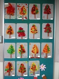 写真はくすのき学級の作品です。この休み中に、美しい紅葉を見ることができるかもしれませんね。