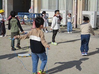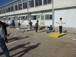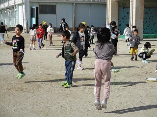 12月19日まで続きます。できなかった技に挑戦したり、跳ぶ数の記録を伸ばしたりしながら、寒さに負けない体をつくりましょう。