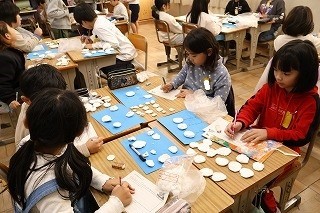 2年生が図工の鑑賞で、でこぼこの形を粘土で写し取り、身の回りの形のおもしろさに気付く「でこぼこ はっけん!」を行いました。