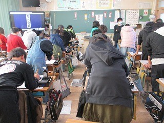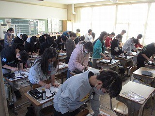 1月に書き初め会でこの字を書くときは、体育館の床の上で書きます。そのための練習をしているのでした。