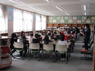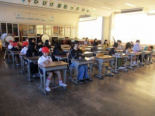 班長が1年生を迎えに行き、通学団の教室に移動します。