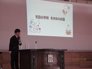終業式には、生徒指導の担当から、冬休みの過ごし方について話を聞きました。