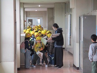 1年生の下校の仕方が3学期から変わりました。教室前の廊下に、通学団ごとに並んで下校します。