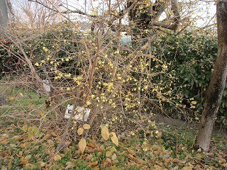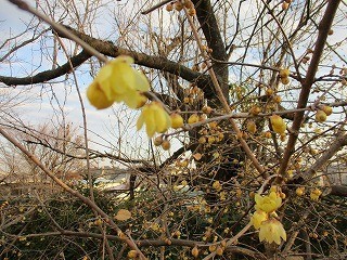 そのそばの、ロウバイが咲き始めました。ロウバイは甘い香りがするので「Winter sweet(英名)」と呼ばれているそうです。