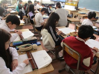 昨日、3年生がそろばんの出前授業を行いました。