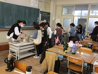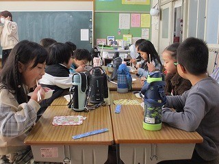 2年生が育てた大根で、おでんの大根パーティーをしました。おでんは、スクールライフサポーターさんが、昨日から準備をしてくれました。