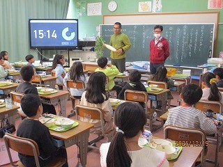 写真は、12月に、学校給食にも提供されている、有機栽培の大根を作っている大根農家の方が来てくださったときの写真です。