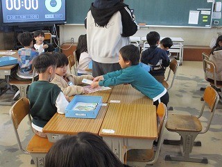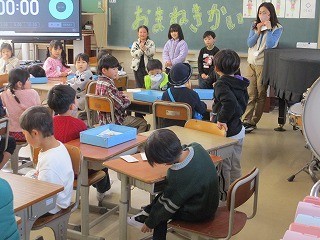 最後に、1年生から年長さんに、手作り封筒に入ったプレゼント渡しました。さて、何が入っているでしょうか??