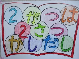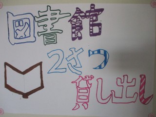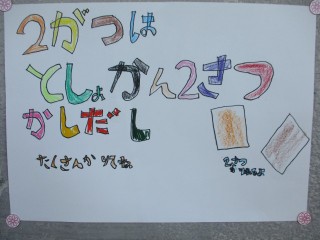 2月は2冊貸し出しをしています。図書委員がかいたポスターが廊下に張り出されています。図書委員おすすめの本の紹介もされています。