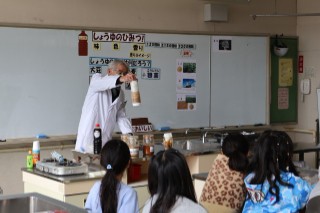 しょうゆ博士に来ていただき、3年生が総合の学習で、しょうゆの出前講座を行いました。