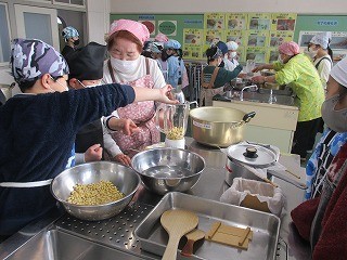 昨日から大豆を水につけたり、様々な道具を準備してくださったりして、朝早くから来ていただきました。