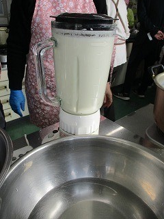 始めに、大豆とつけ汁をクリーム状になるまでミキサーにかけました。