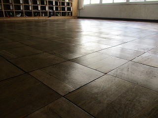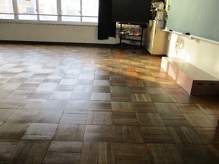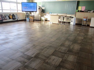 金曜日にワックスがけをした教室の床は、ピッカピカです。