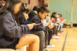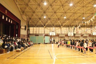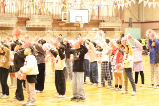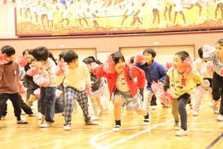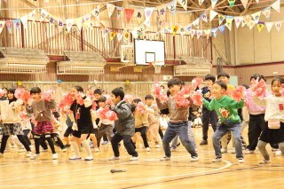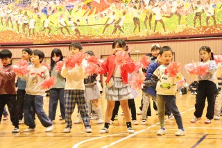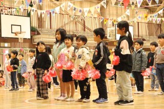 プログラムの最初は、6年生のペア学年、1年生でした。1年生が登場すると、6年生は手を振ったりペアの名前を呼んだりしていました。優しかった6年生が目の前にいてくれて、1年生はうれしかったことでしょう。