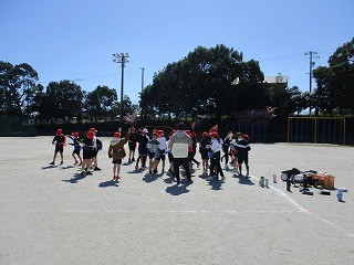 今、体育館は卒業式のために椅子が並んでいるので、体育の授業は外で行っています。