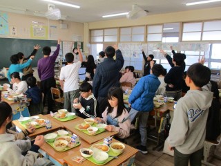 6年生の食べっぷりは気持ちがいいほどで、ジャンケン大会(?)も大いに盛り上がり、笑顔いっぱいのお祝い給食になりました。