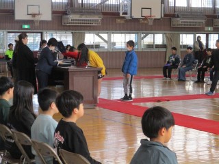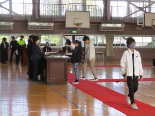 式の始めから終わりまでを通して練習しました。6年生のキビキビした動きや、大きな声が、式を引き締めていました。