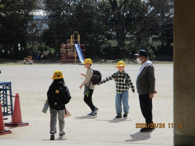 吉田っ子たちは、今年度の1年を終え、明日から始まる春休みに心躍らせながら、地域の皆さんと元気にあいさつをして下校しました。