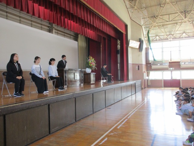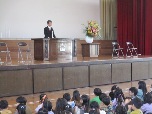 着任式・赴任式で4月から着任した校長、赴任された先生方の紹介の後、1学期始業式を行いました。とてもよい姿勢、よい挨拶でやる気満々の雰囲気の中、新学期をスタートさせることができました。