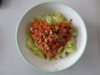 学校給食週間3日目の献立(沖縄県の料理)は、・むぎごはん・牛乳・タコライス(タコ...