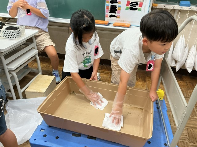 どのクラスでも一生懸命お掃除をし、餌をあげることができました。