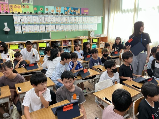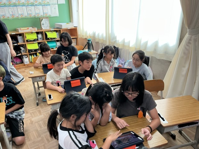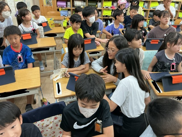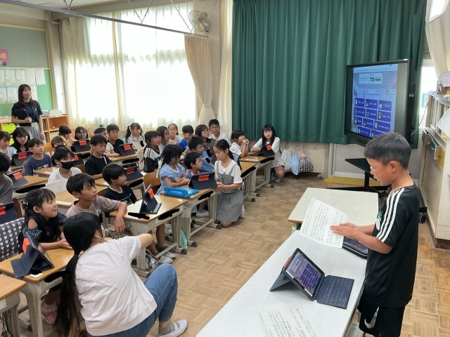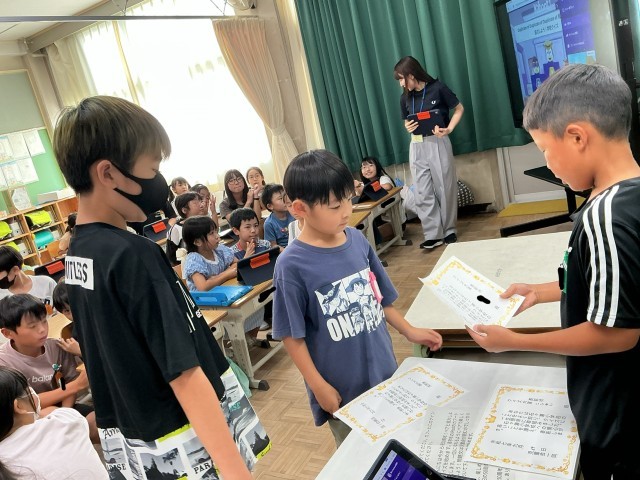 6年生と一緒に答えを考えて参加しています。優勝者の表彰もありましたね。
