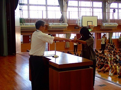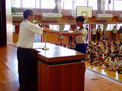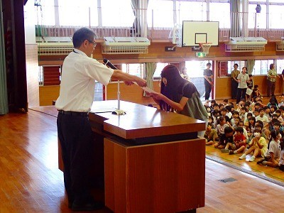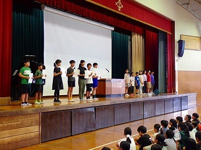児童会・学級委員・代表委員会・委員長の順に校長先生から任命状を受け取りました。