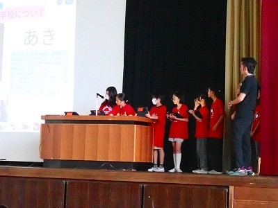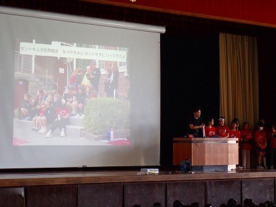 夏休みに訪問した児童たちがスライド写真を使いながら、日本との文化の違いなどを発表してくれました。