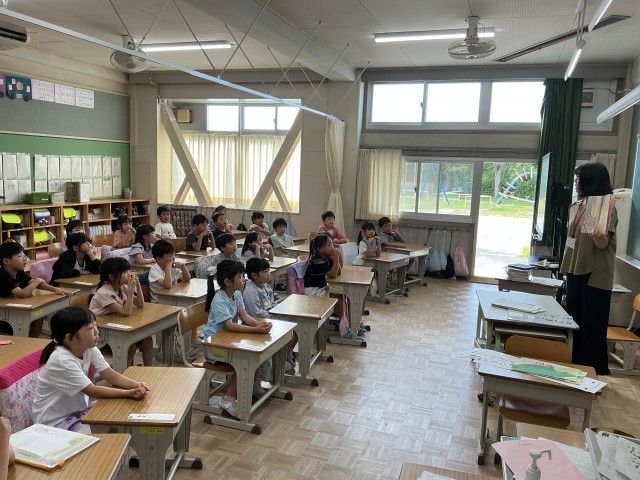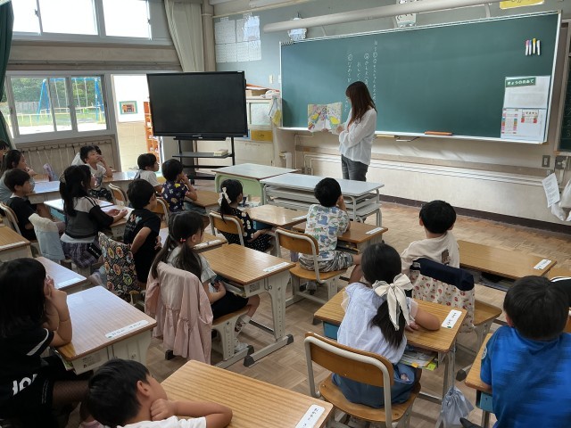 1年生の教室には、1学期から継続してひいらぎ山の子ども文庫さんが読み聞かせにやってきてくれています。