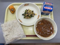 今日の献立は、秋の香ごはん、牛乳、いわしのしょうが煮、しそひじきあえ、沢煮椀、ぶどうゼリーでした。