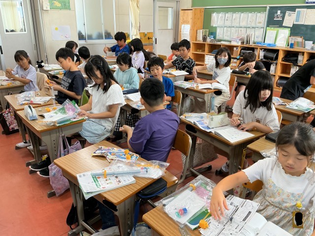 教室で実験結果を予想したり、実際に実験をしたりと楽しく学んでいました。