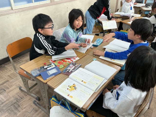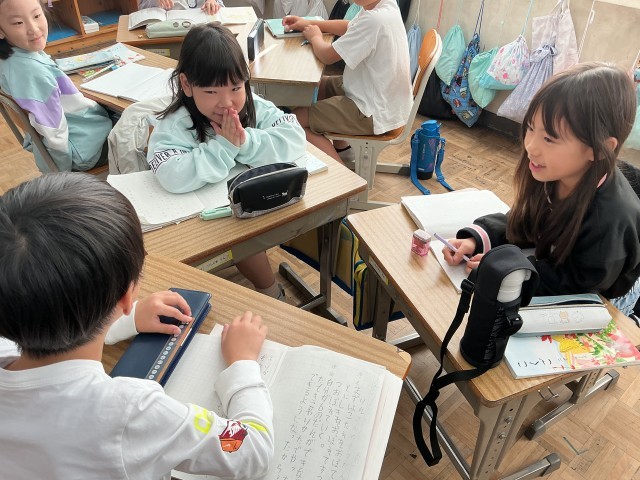友達の悩みを聞き、より良い方法を考えたり、質問しあったりしています。
