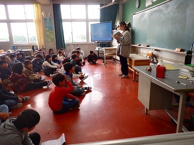 10月30日(木)には、先生たちの読み聞かせが行われました。朝の読書タイムの時間に、担任以外の先生が読み聞かせを行いました。