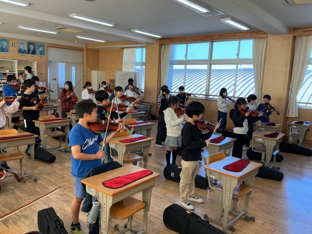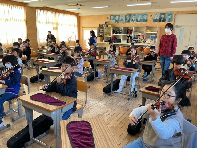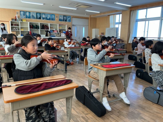 大府市では「バイオリンの里おおぶ」の取り組みの一環として、4年生がバイオリンの演奏を体験します。