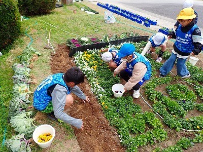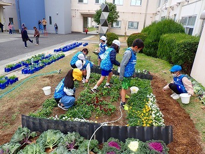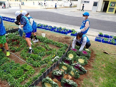 また、市の方から「花いっぱい運動」で葉牡丹(ハボタン)をいただきました。