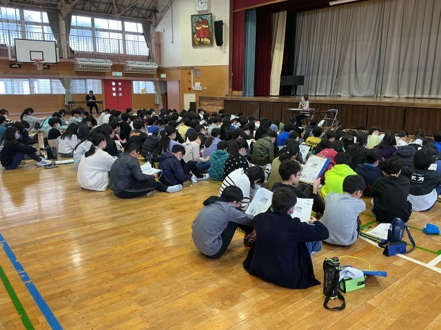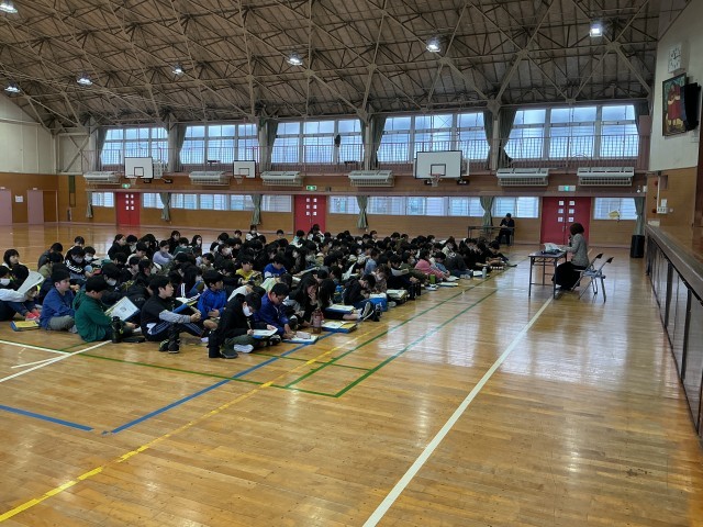12月4日から始まる人権習慣に合わせて、大府市福祉まるごと相談室の職員の方をお招きし、「ヤングケアラー」についての講話をしていただきました。さまざまな要因でヤングケアラーとなっている子どもがいる事実を知り、それらの子どもたちの人権を守るために何ができるのか、講話を聴いている子どもたちも熱心に考えていました。