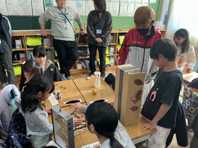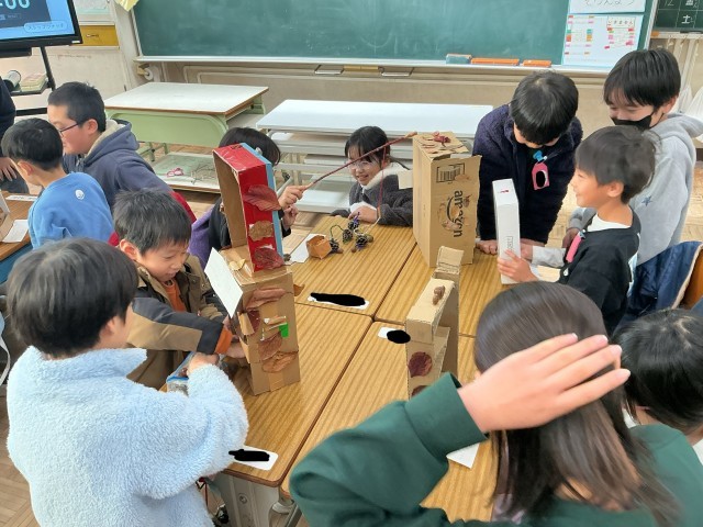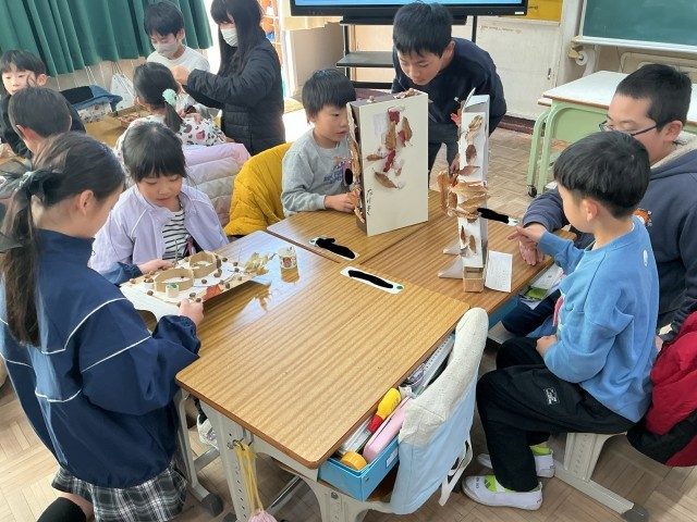 1年生が生活科の授業で作ったおもちゃを、6年生に遊んでもらいました。