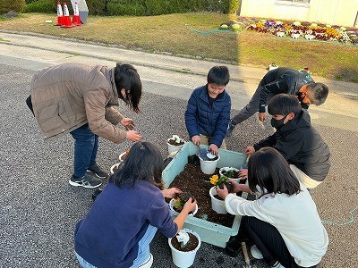説明を受けたあと、色とりどりのパンジーの花に心を込めて、植え替えを行っていました。