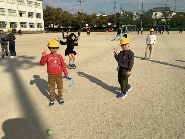 運動場や南庭に行くと、ドッジボールや縄跳び・シーソーなどを楽しんでいました。
