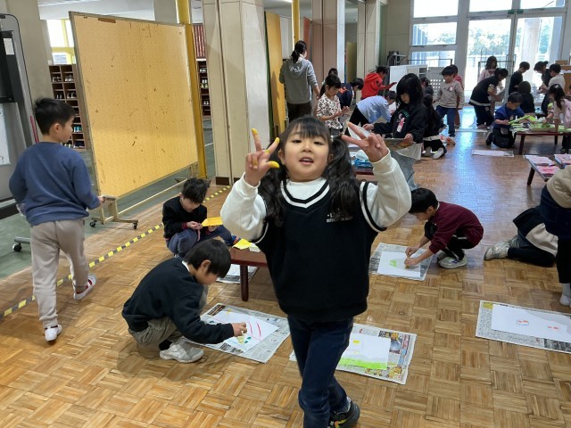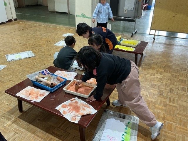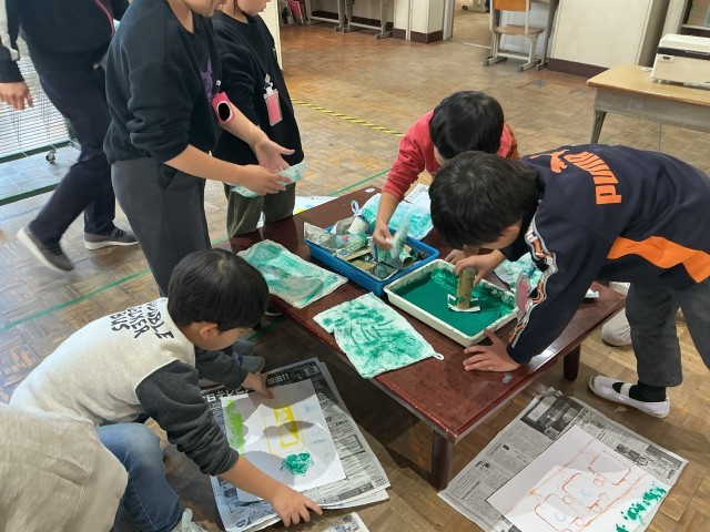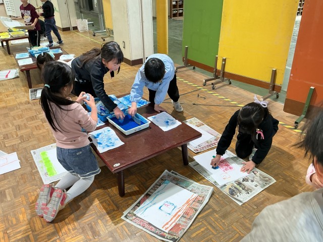さまざまな形のスタンプを組み合わせて絵を完成させていきます。