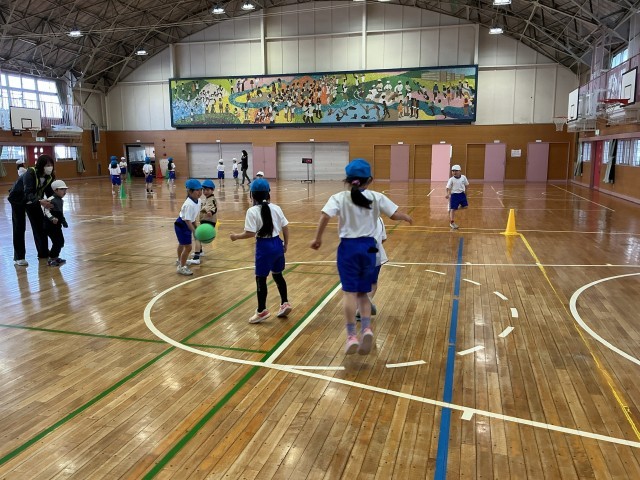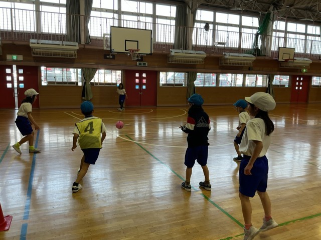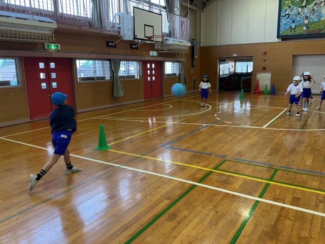 今はボール投げの単元を行なっていて、中あてドッジボールをしています。