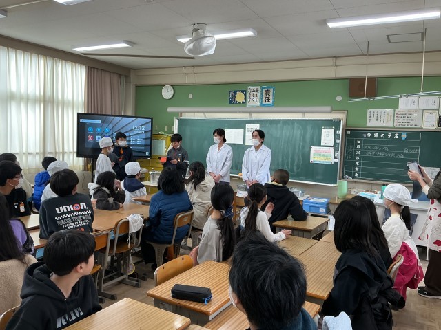 3/13は卒業お祝い給食でした!① 公開日 2026/03/17 更新日 2026/03/17 6年 3/13は、6年生が楽しみにしていた「卒業お祝い給食でした」給食の準備、会食前には、各教室に調理員さんをおむかえして、感謝の会を行いました。短い時間での会でしたが、6年間で1000回以上食べてきた給食の感謝を伝える機会になりました。 +1 6年生