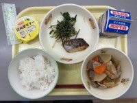 今日の献立は、ごはん、牛乳、さわらのしょうゆこうじ焼き、豚肉と大根の煮物、磯香あ...