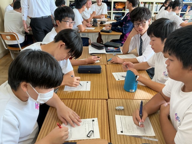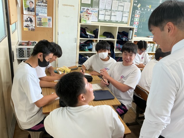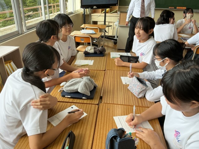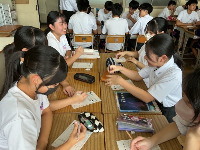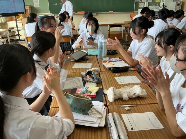 オンラインではなく相手を見て、対面で伝え合っている姿がよいですね。