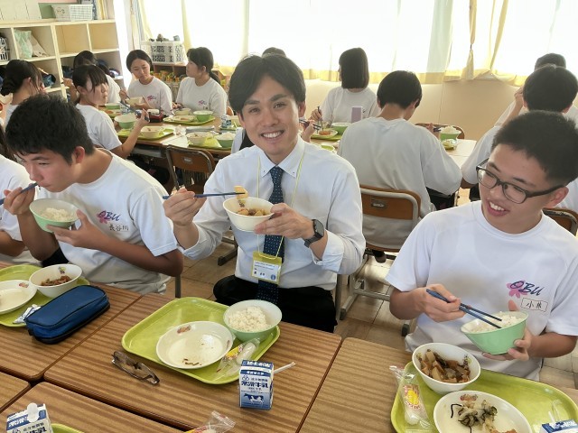 高校の先生が研修しています 公開日 2025/10/06 更新日 2025/10/06 日々の様子 大府中に武豊高校から2名の先生が研修に来ています。異校種において教員としての幅広い資質向上を図ることや中高の接続や連携を学ぶことを目的とした研修です。高校との違いや中学校の良さを専門教科に関する知識・技術の深化や指導力の開拓へ繋げていただけると幸いです。授業中には解き方のアドバイスをしてもらっている場面が見られ、生徒にもよい刺激になっているようでした。
