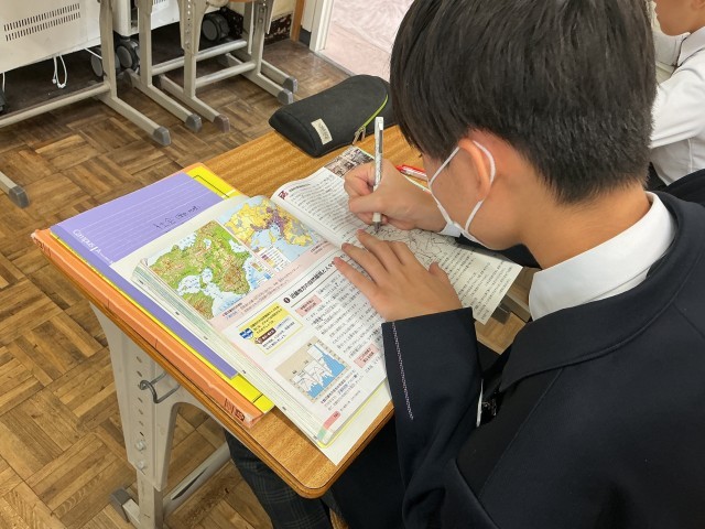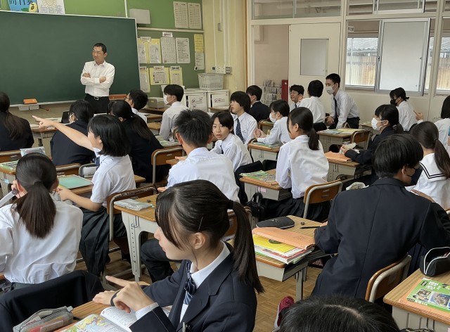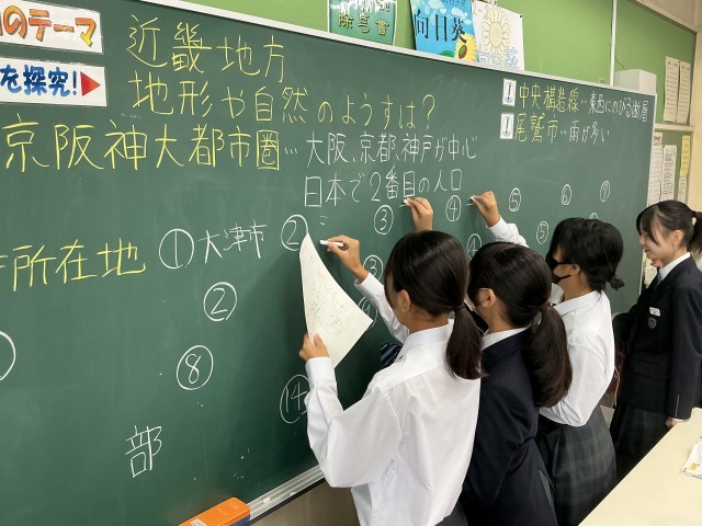 近畿地方はどんなところ 公開日 2025/10/15 更新日 2025/10/15 日々の様子 「二度付け禁止ってなんか面白いよね」「通天閣に行ったことある」「私はポン酢のたこ焼きが好き」2年生の教室では社会の授業でスライドを見ながら話し合っていました。今日は近畿地方の自然環境や人々の生活にどのような特色があるか学んでいます。県庁所在地は知っている生徒が多くいます。地形には新出の語句があります。これらが近畿地方の人々の生活にどのように結びつくのか、考えてみてくださいね。 +6