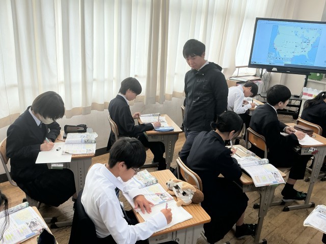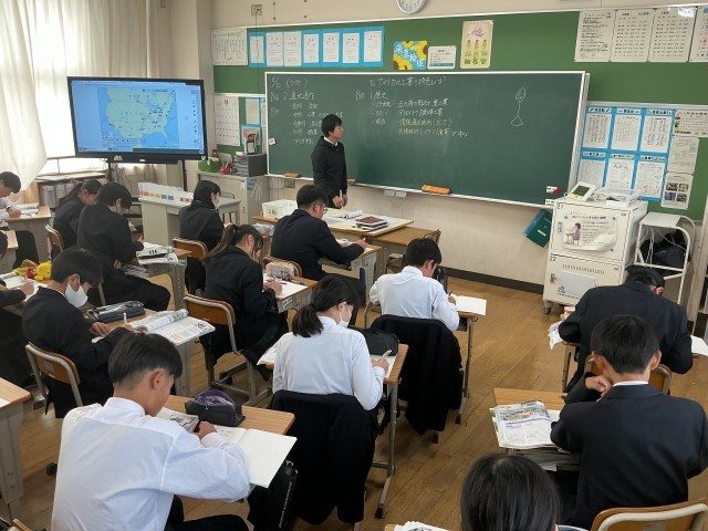 アメリカで作られているものって 公開日 2025/11/12 更新日 2025/11/12 日々の様子 1年生は社会の授業で北アメリカの工業について学習していました。「アメリカで作られているものってなに?」「飛行機」「iPhone」「時計」など、さまざまな意見が出てきます。北アメリカの工業の歴史と現代までの変化から、世界にどのような影響を与えたか学んでいきます。 +6