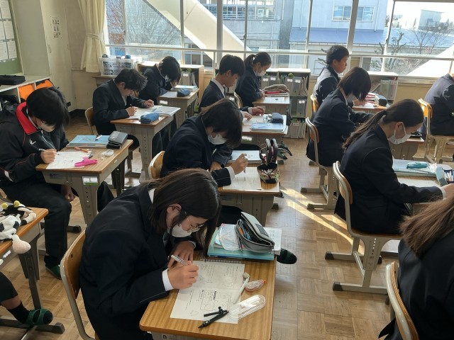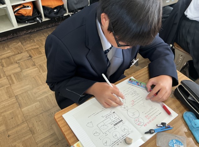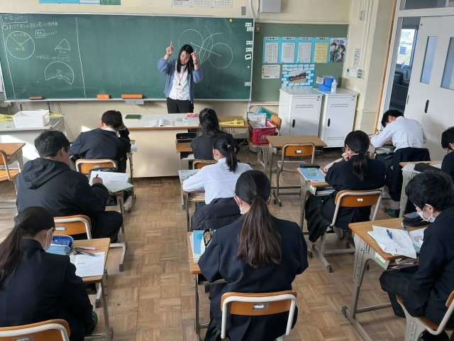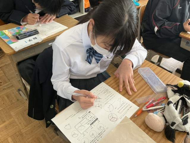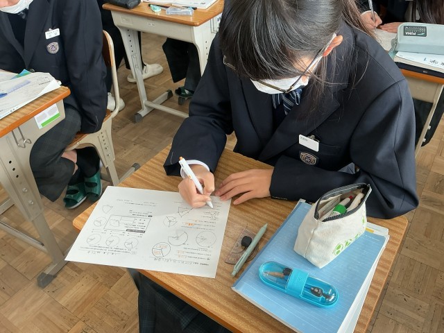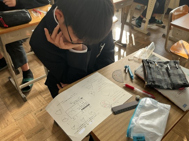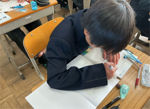 1年生の教室では数学の授業で平面図形の学習をしていました。