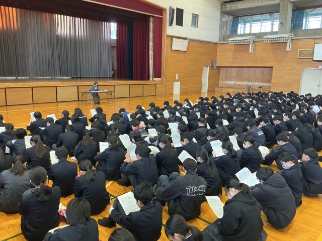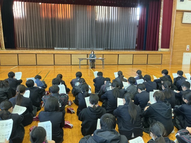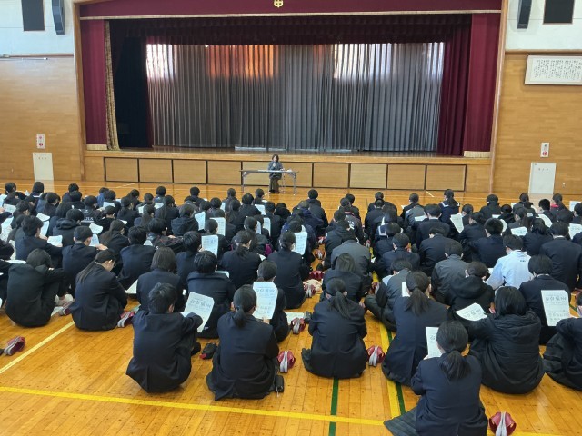 ケアとお手伝いの違いって 公開日 2025/12/11 更新日 2025/12/11 日々の様子 2年生は体育館でヤングケアラー講座を行っていました。大府市役所「福祉まるごと相談室」の職員の方を講師としてお迎えしました。ヤングケアラーというものは自分の身近にあるかもしれないということ。そして、ケアとお手伝いとの違いや子どもの権利について教えていただきました。家族だけでなく、自分のことも大切してほしいです。自分の生活や将来について問いかける機会になるといいです。