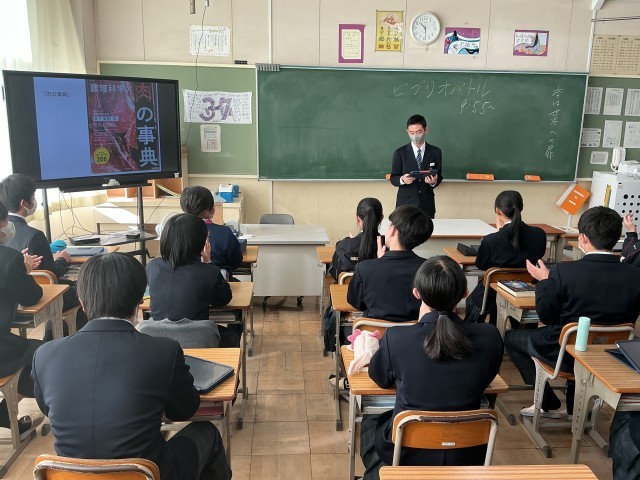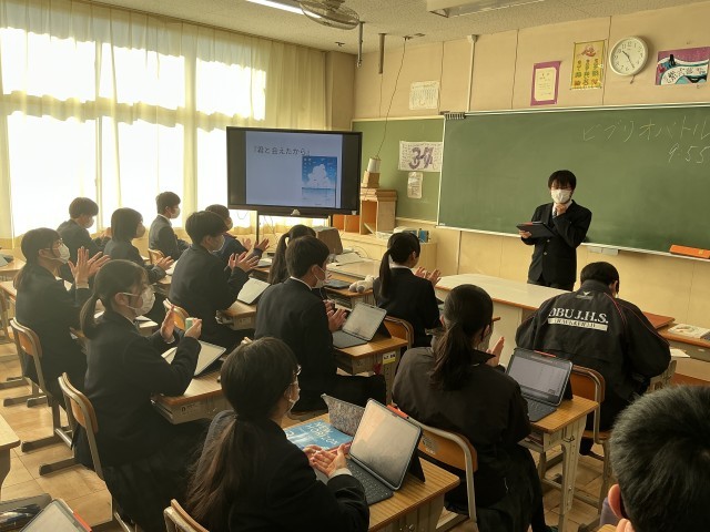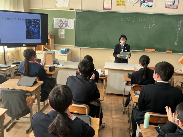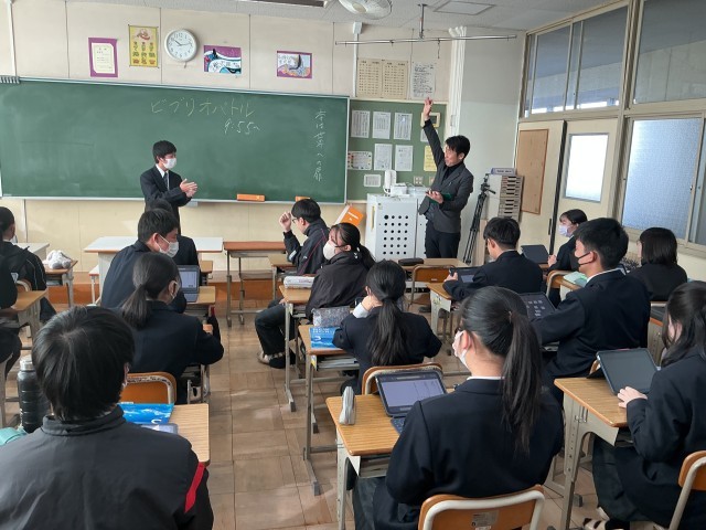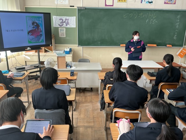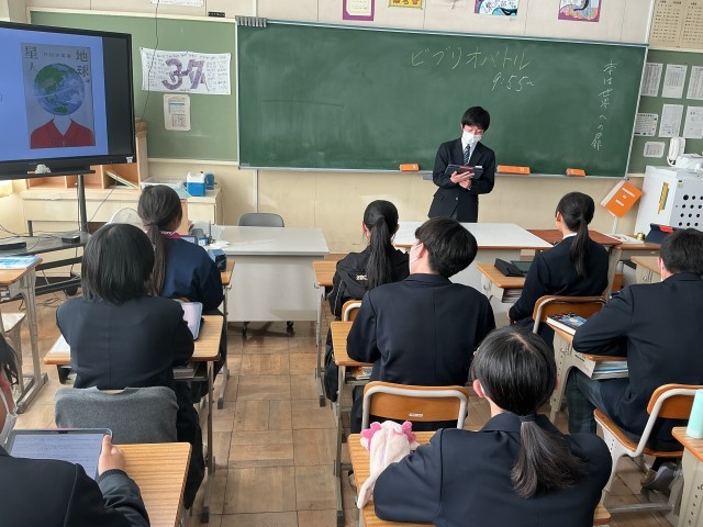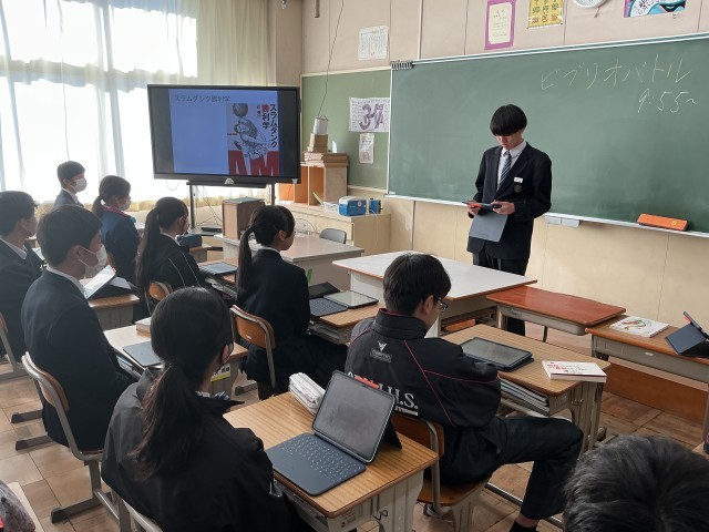 いつも本をそばに 公開日 2025/12/15 更新日 2025/12/15 日々の様子 3年生の教室では国語の授業で発表会をしていました。本に対する世界を広げるための、おすすめ本の紹介です。どの生徒も聞き手を惹きつける言葉と口調で語り始めます。聞き手はあらすじや話し手の考えなどを聞き、印象に残った本や発表をメモしていきます。学級文庫にある本を紹介している生徒もいました。次回も発表会は続いていきます。本は生活の身近にあります。気になる本は読書タイムに読んでみてくださいね。 +7